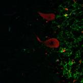 The result obtained by double immunofluorescent staining of the cerebellum with antibodies against Lewis x and PGDS is showed in Fig.2. The dendrites of the granular cell layer stained with anti-Lewis x antibody was shown in green color and the Purkinje cell was stained with anti-PGDS antibody and shown in red.